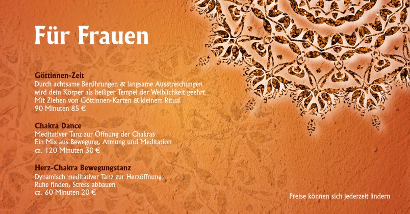 Herausforderungen zu unterstützen. Aus meinen Erfahrungen, Ausbildungen und Kursen in Hawaii, Indien und Deutschland sind meine Massagetechniken entstanden und gewachsen.